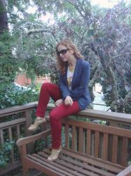 Skippy Says: Tales Of A Wimpy Redhead (OOTD) In the week I was in Austin, Fall came to San Francisco. The air was brisk when I took Ryder out for his morning walk, so, being the wussy that I am, I put on cashmere gloves and layered two thick sweaters on top of each other. Because of all the heavy clothes I had on, the scale said I gained three pounds during my little vacation. I know what you're thinking and NO, it couldn't possibly be all those sweet treats I ate in Austin. It was my heavy clothes I tell you. That's my story and I'm sticking to it. While layering two bulky sweaters on top of each other is warm, it's not exactly stylin'. And since it was really not all that cold out (around 60 degrees and sunny), I...