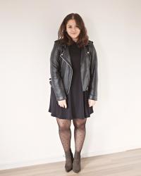 Una de las pocas cosas que me gusta del invierno es esa mezcla casual de texturas que el frío provoca. Podemos hacer que el invierno sea bastante más interesante mezclando texturas. Esta mezcla es la más clásica (lana y cuero), solo añadí las medias de rejilla para hacerlo un poco más entretenido.