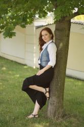 1st day of school options! Inspired by Chictopia! & CHALLENGE ACCEPTED! Okay, time to take a Back to School #selfie or in my case #cell-fie I find first day of school outfits terrifying, in a new school I am ever more anxious! The Chictopia YouTube Channel offered lots of inspiration to ease my stress! Here are a few of my outfit ideas for this crucial moment! {Friday will be a "What's in my Teaching Bag!"} My first option is what I like to call "Transitional Tropical": What I Wore: glasses- BonLook , lips- Maybelline Color Whisper in "Rose of Attraction", top & shoes- The Webster for Target, pants- Target My second option is a little more girly...