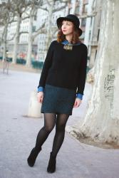 Weekday Sequins I could go a few ways on explaining why I'm wearing a full on sequined jacket on a Thursday. 01: It's laundry day and this is all I had clean. (which technically in our house it's always laundry day)02: The end of the world is in two days and I might not get a chance to wear it again. 03: It's Thursday, I'm going nowhere but work so why would I not wear a sequined jacket? Since I probably shouldn't joke about the end of the world, we will go with reason number one or three. It's usually always a combination of both. ___________________________________ Jacket: c/o Jigsaw LondonBlouse: Anthropologie Heels: Nine WestNecklace: Similar