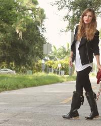 And while it only sprinkled before taking these, I have found that this pairing is somewhat of a uniform for when it rains, though I forgot my leopard umbrella. Cozy, and just enough layers to stay dry...