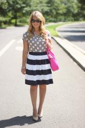 Well Timed Skirt: Sister's, Top: Old Navy, Shoes: Target, Purse: Target, Watch: Target, Nails: Essie Topless and Barefoot You guys. I seriously have been in the worst possible mood all day. I ran late this morning, had to do research all afternoon, found out my contacts were never ordered because my prescription is out of date and I am about to scratch my eyeballs out, still haven't gotten my new phone cover, had a bad hair day, and found out my (and Dusty's) dog ate through one of my giant, beautiful ferns (that I have been growing for like four months) and two pots of impatiens while I was at work. And honestly, all of these little things should have...