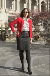 For the ninth day of the Take One, Pass It On remix, I am rewearing both the belt and boots from my last outfit . I wore this to my sister-in-law’s bridal shower this past weekend, though I quickly ditched the cardigan due to the unseasonably warm weather.